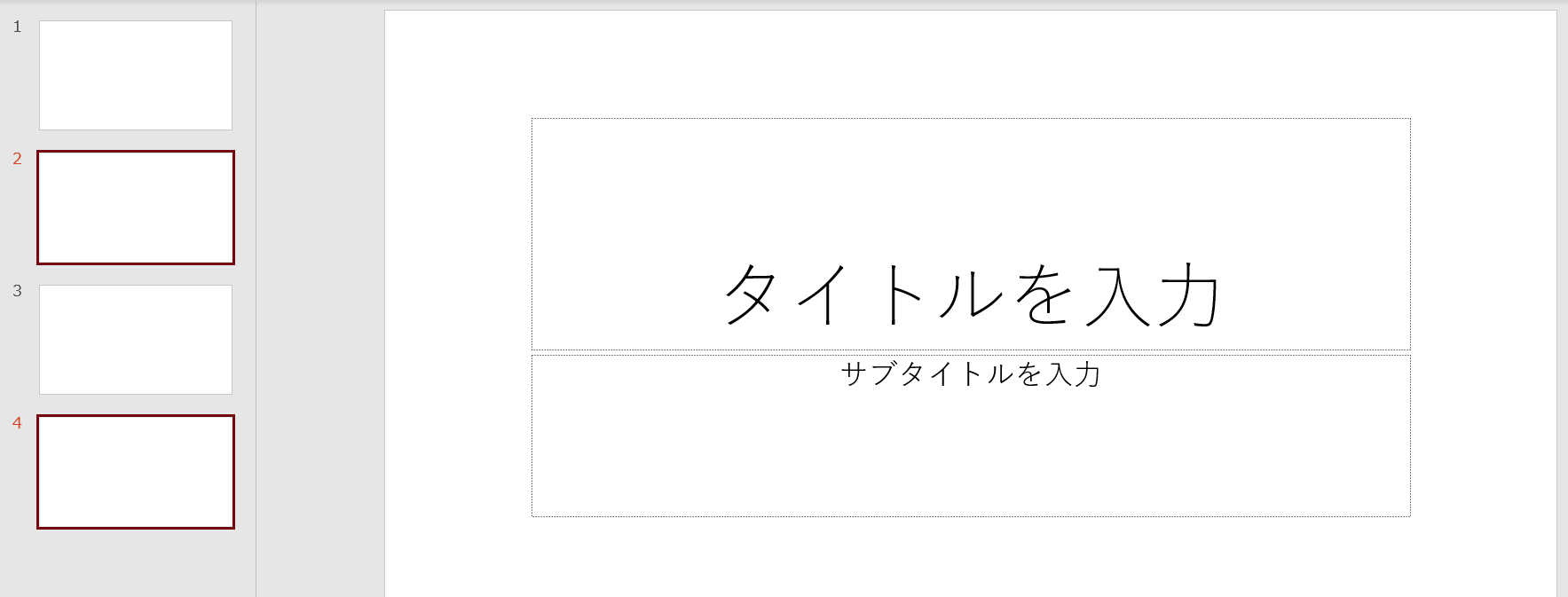 ③の画像では、選択したスライド以外は真っ白ですが、実際はそんなことはないと思いますので、選択したスライドのデザインだけで少し遊んでみたいと思います。