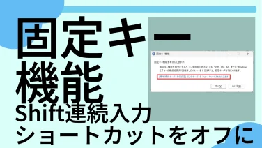 Windows11で、固定キー機能のショートカットキーをオフにする手順について解説します。[設定]>[アクセシビリティ]>[キーボード]>[固定キー機能]>[固定キー機能用のキーボードショートカット]のオフをしましょう。Shiftが押せます。